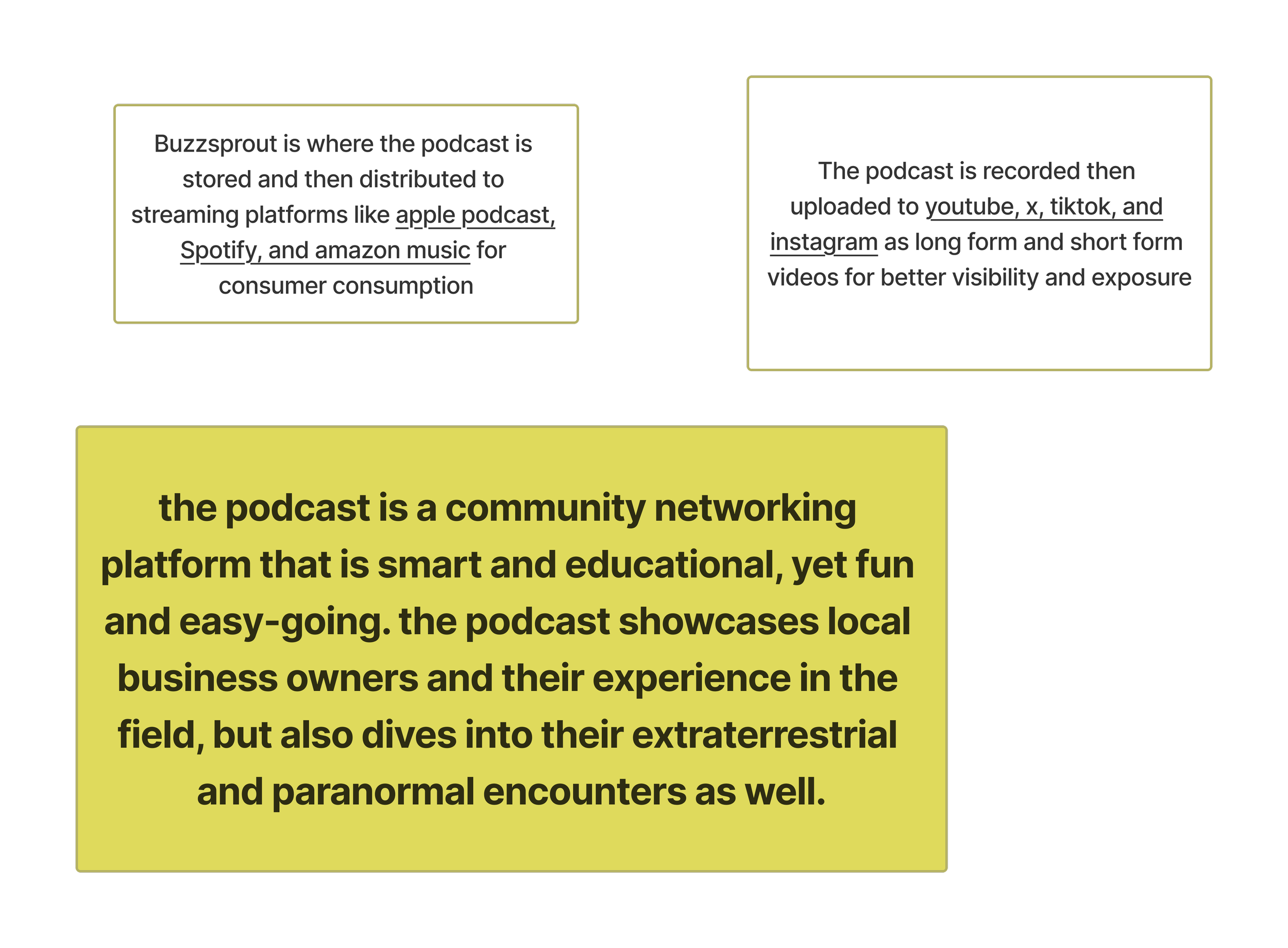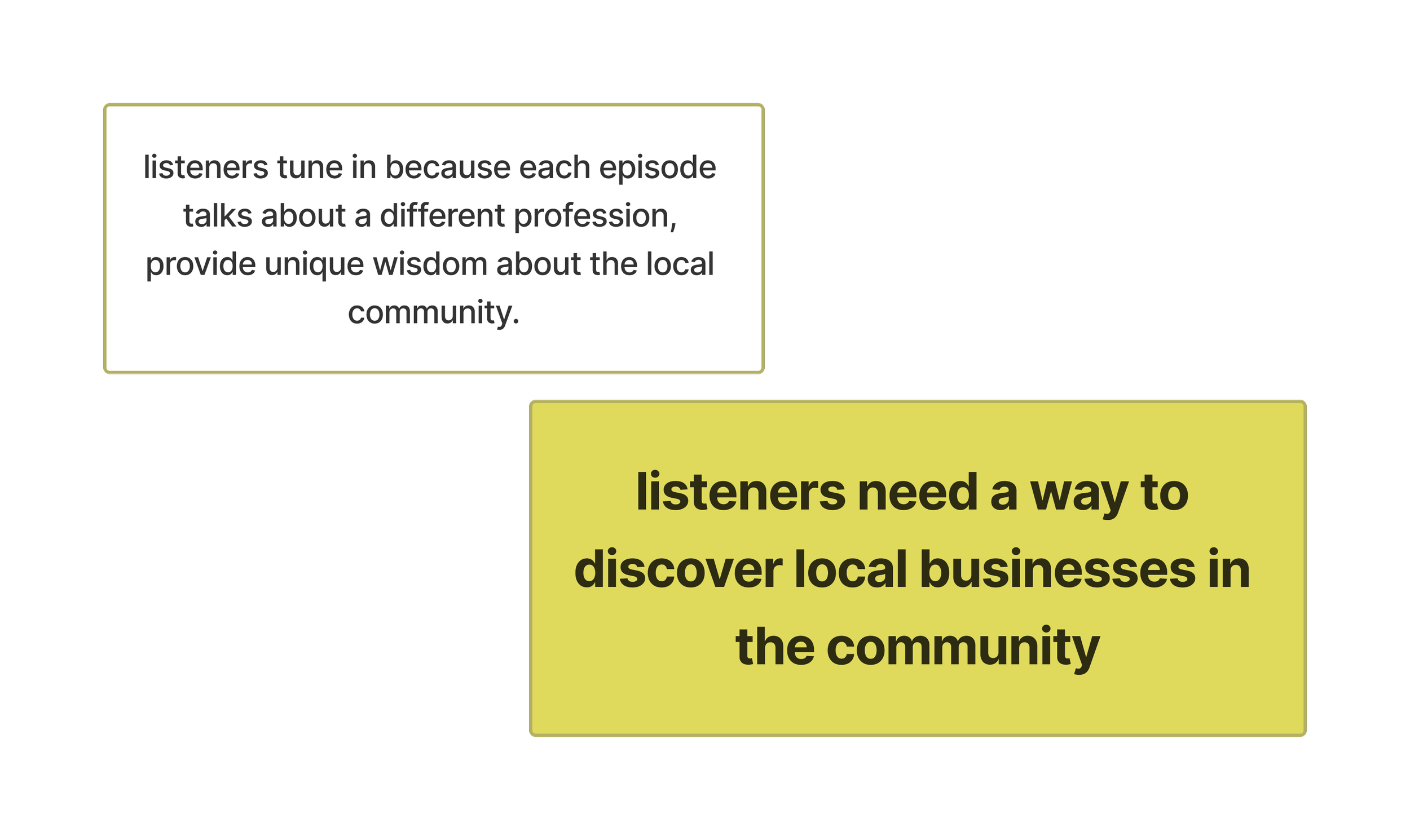 Podcast listeners (new and returning) plus potential guests looking to learn about the show, listen quickly, or apply to be featured