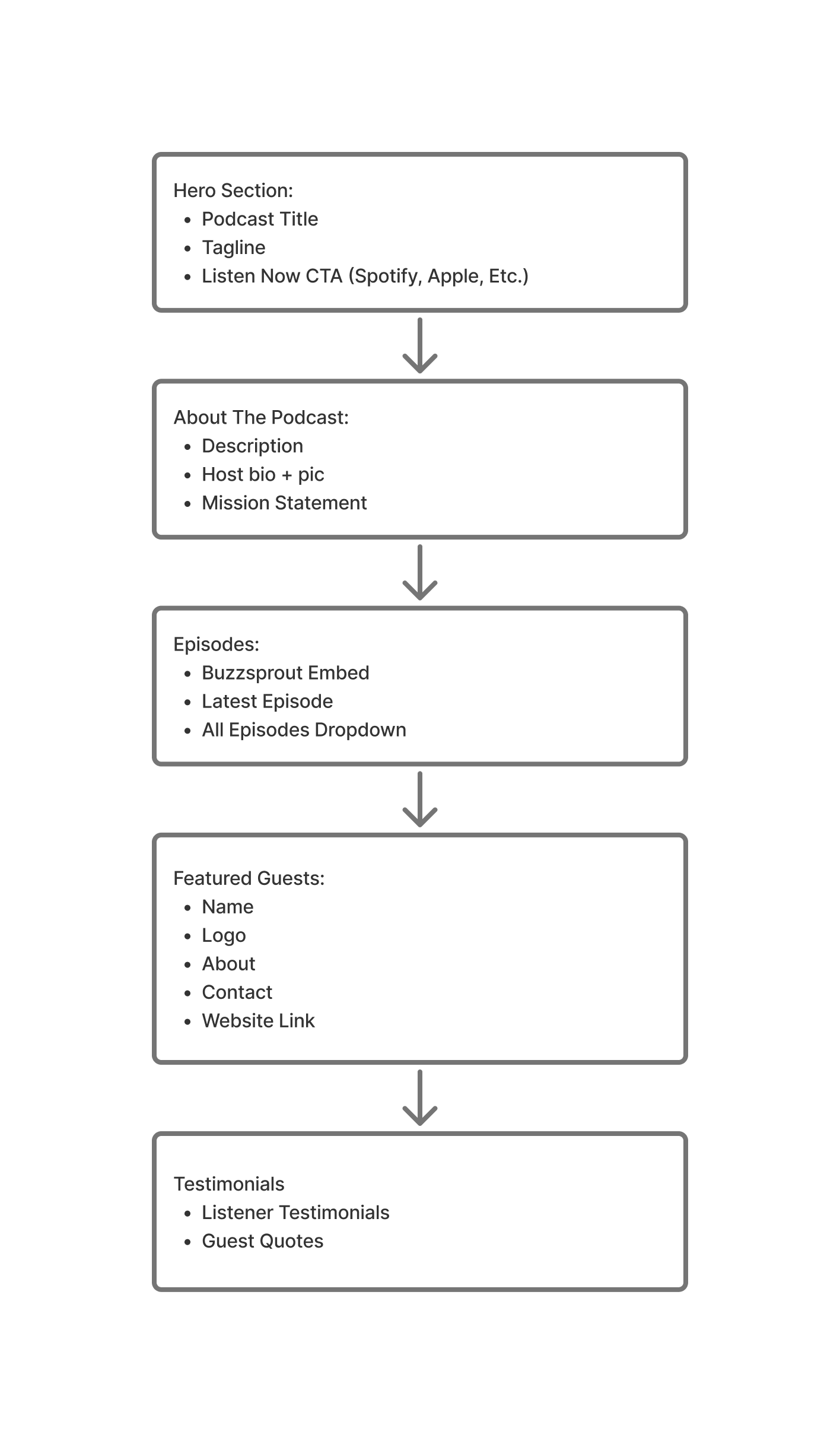 Hierarchy Translation: The layout follows the planned scroll flow so each section plays a specific role in moving the visitor toward listening or engaging.