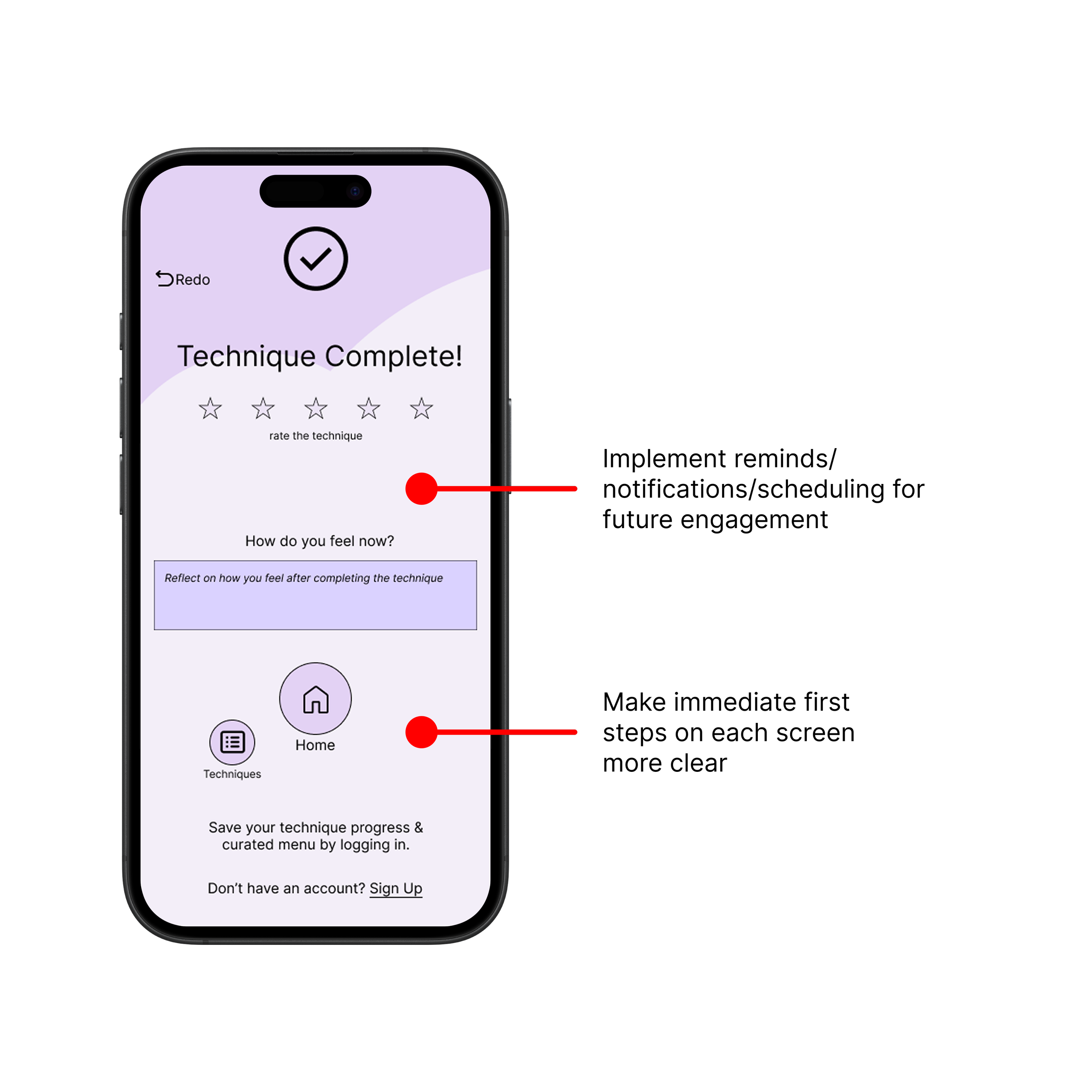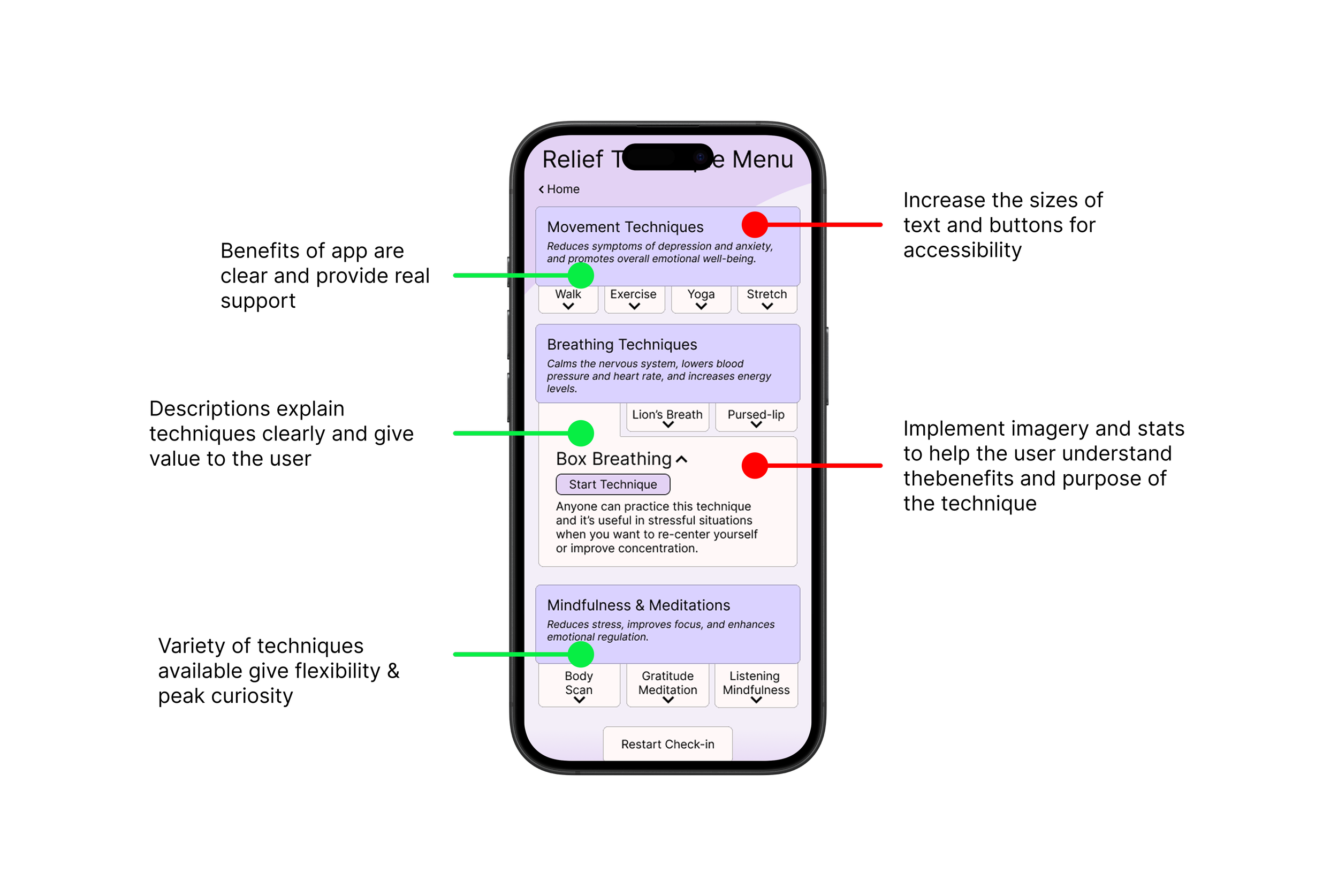 I specifically sketched the relief techniques to later validate if these types of techniques were valuable to our users.